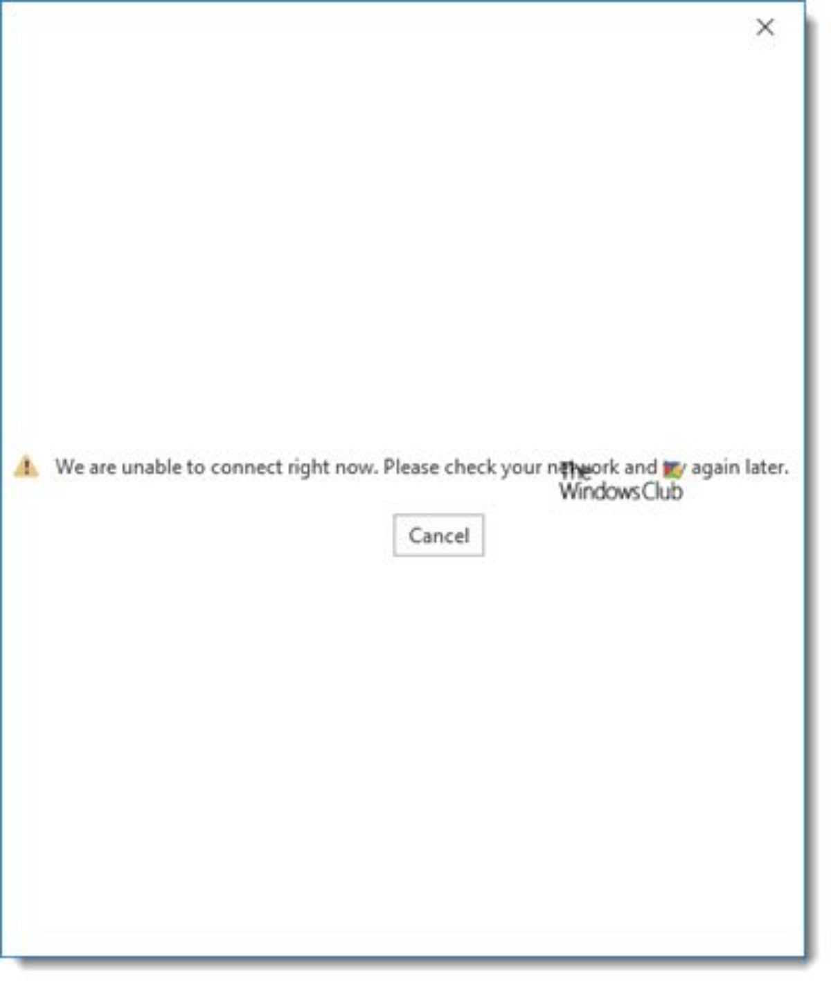 Error We Are Unable To Connect Right Now Displayed When You Try