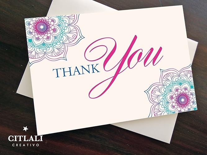 Amazon Com Colorful Mandala Paisley Set Of 4 Or 12 Thank You