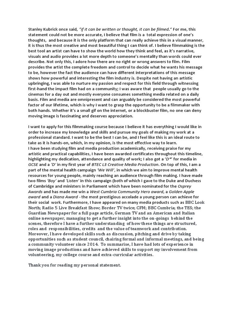 Personal Statement Mass Media Communication Prueba Gratuita