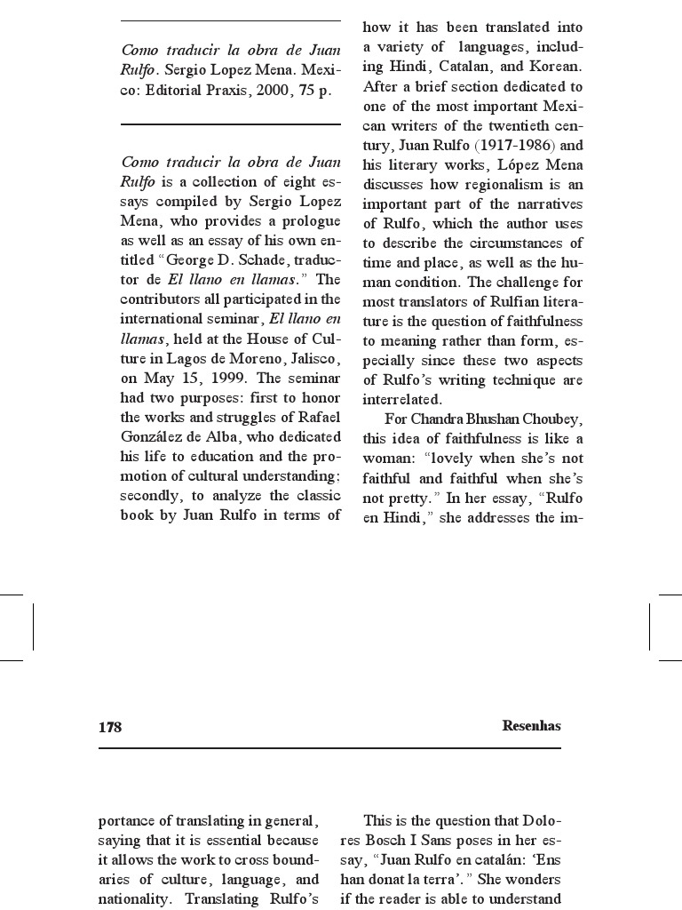 Resenhas Como Traducir La Obra De Juan Rulfo Sergio Lopez Mena