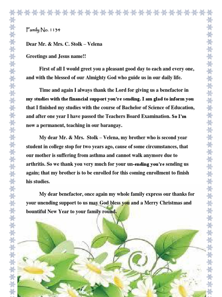 A Letter To Benefactor