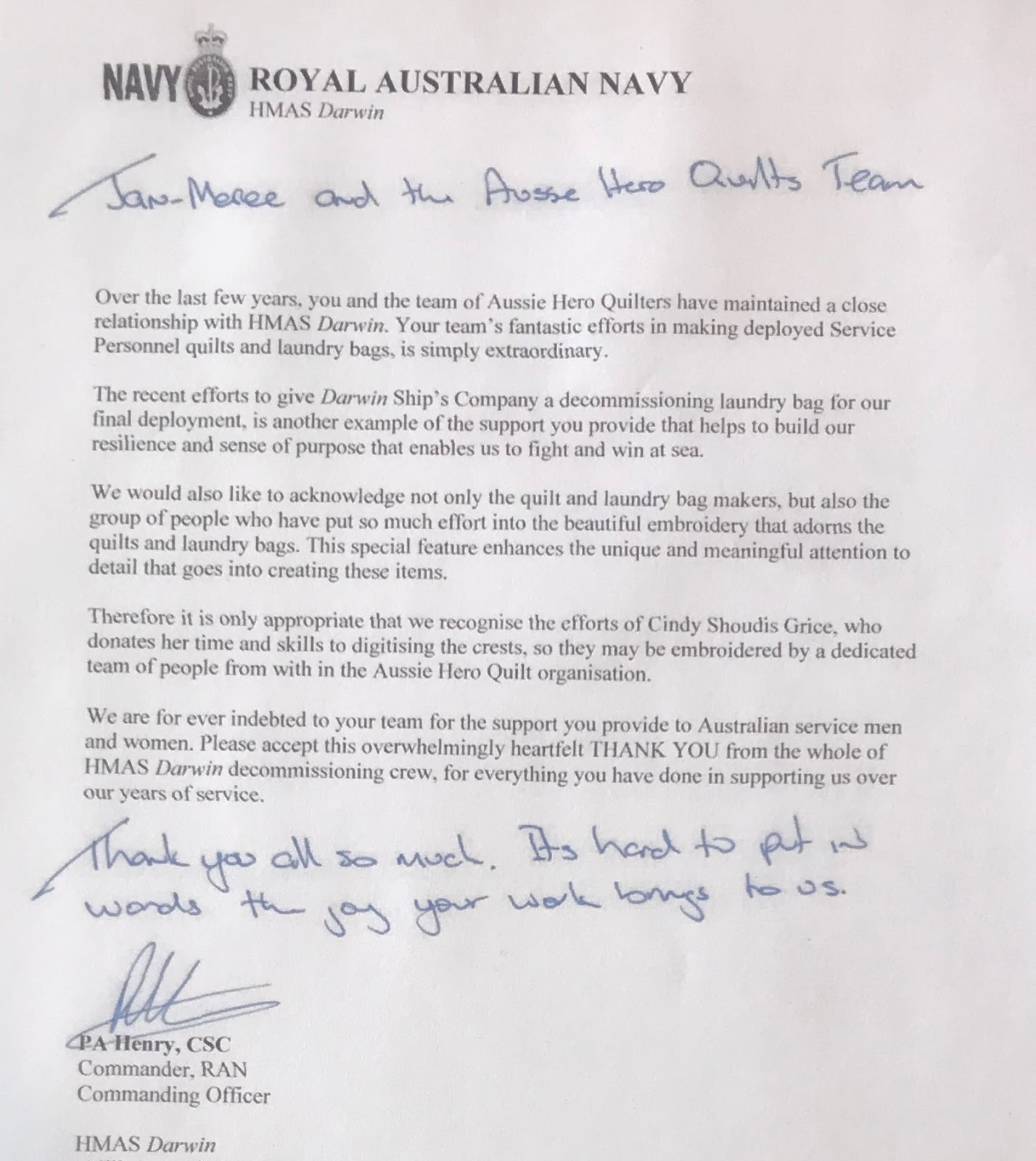 Aussie Hero Quilts And Laundry Bags A Thank You From The Co Of