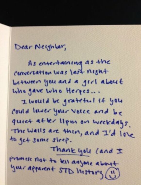 Student Writes Letter To Neighbour Having Loud Sex Gets