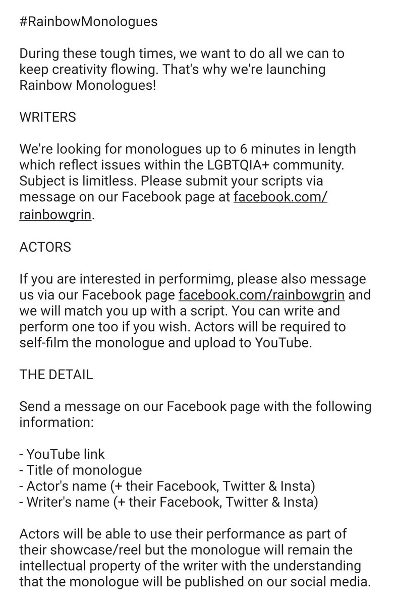Grin Theatre On Twitter Rainbowmonologues More Monologues