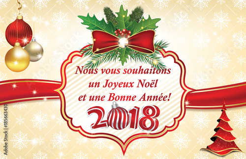 French Greeting Card We Wish You Merry Christmas And Happy New