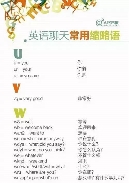 和外国人聊天有哪些常用的简化英语 比如you 写成u 知乎